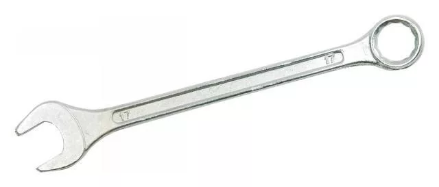 Kétoldalas szénacélból készült csillag-villáskulcs. A kulcsfejek 15 fokban ferdén állnak