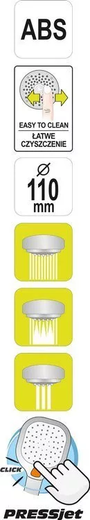 Zuhanyfej 3 funkciós, PRESSjet funkcióval, strapabíró fényes króm réteggel.