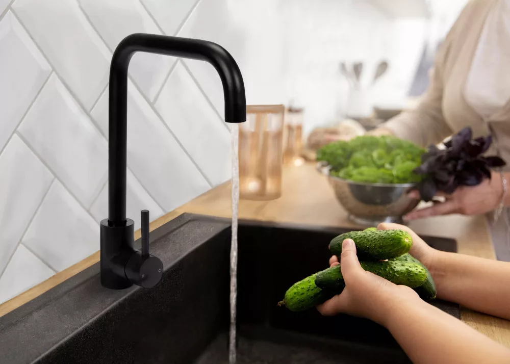 Mosogató csaptelep, fej zafír keménységű kerámia betéttel, 304-es rozsdamentes acélból készült.