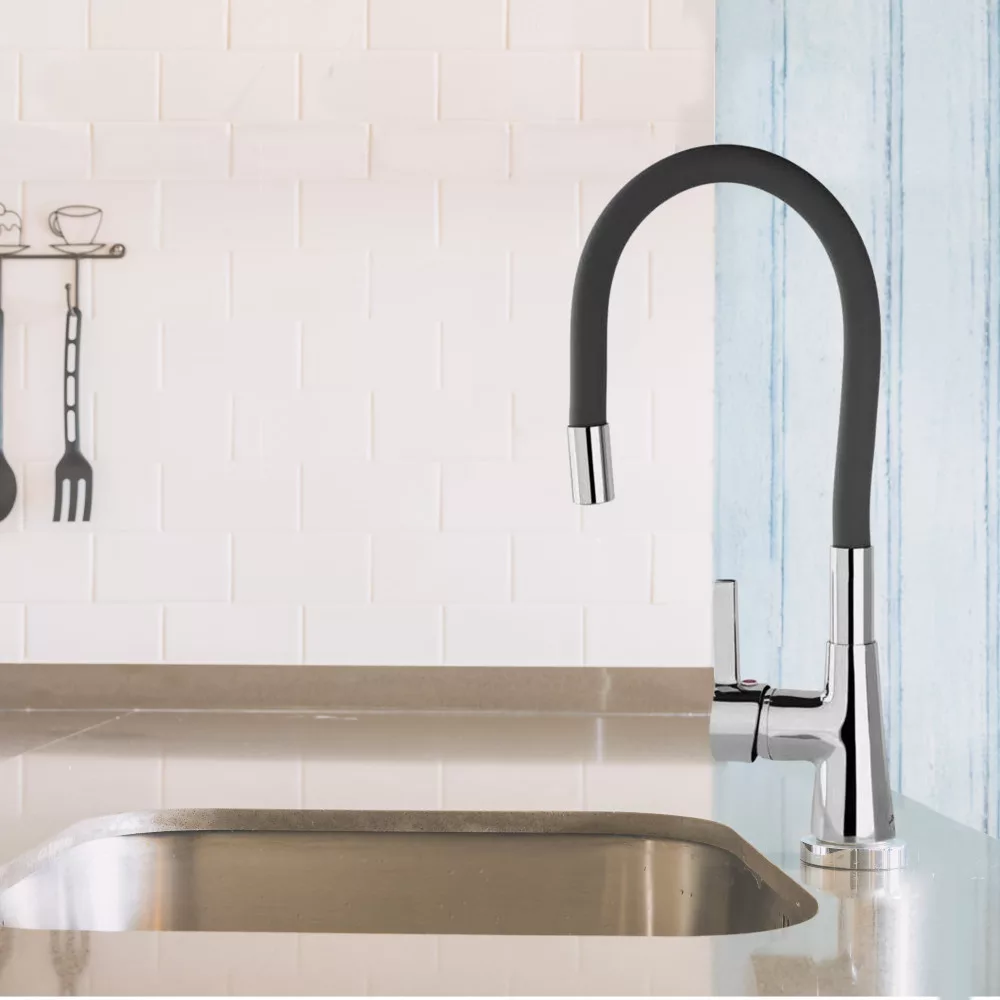 Mosogató álló csaptelep sötétszürke flexibilis csővel, gyémánt keménységű kerámia betéttel, 360 fokban elforgatható.