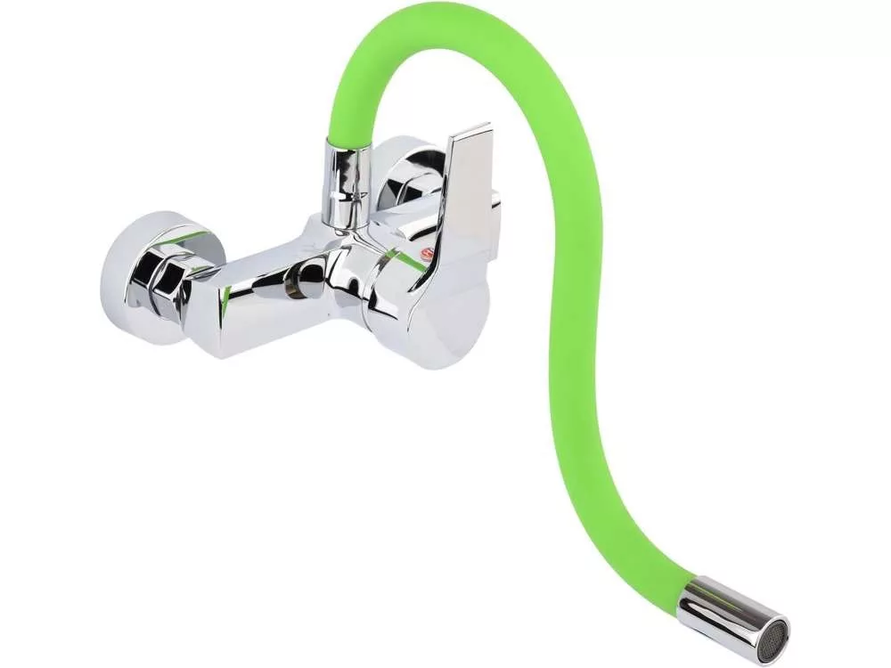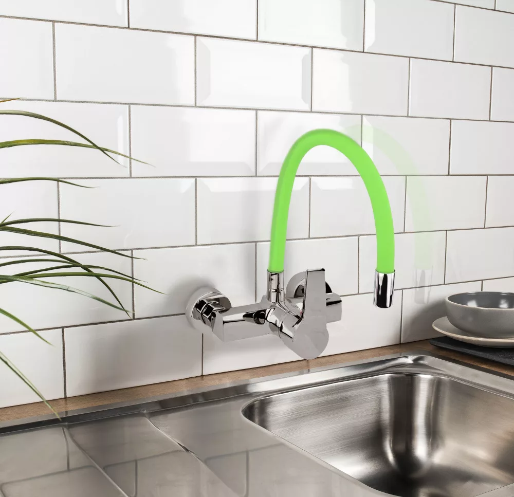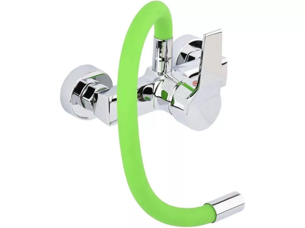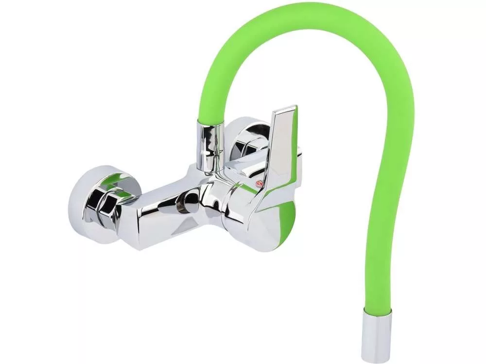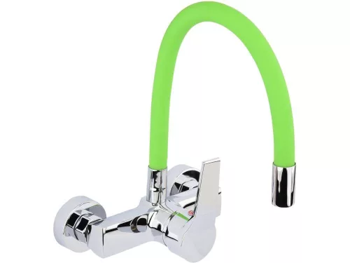 Fala mosogató csaptelep zöld flexibilis csővel - falra szerelhető