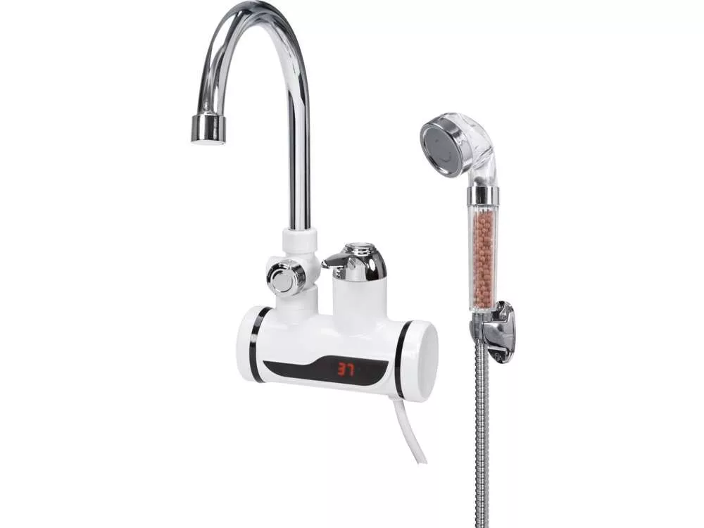Vízmelegítő csaptelep zuhanyszettel, ECOflow rendszerrel, könnyen leolvasható LED kijelzővel.