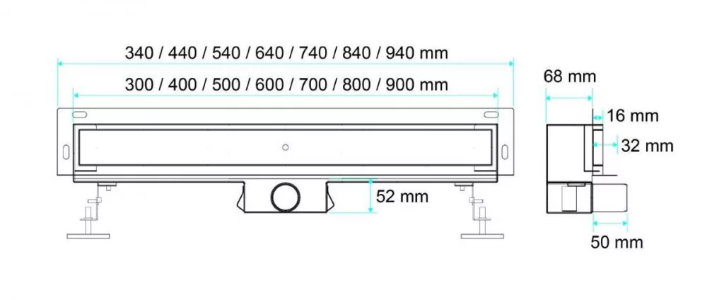 A rendelkezésre álló méretek széles választéka lehetővé teszi a hosszának optimális igazítását a kabin vagy a csempék méretéhez,