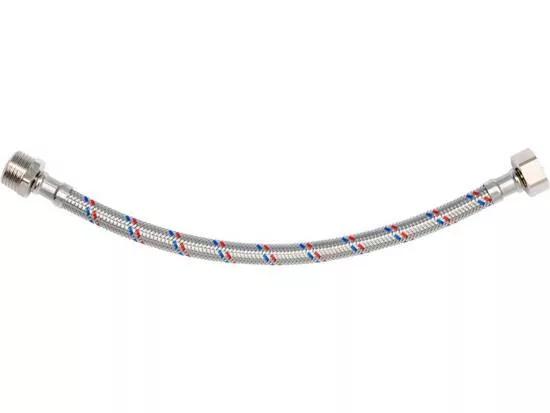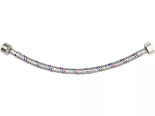 Flexibilis bekötőcső 1/2 col x 1/2 col (belső-külső) 30 cm-es, rozsdamentes acél, hideg és meleg vízhez készült, Országos Higiéniai Intézet tanúsította.