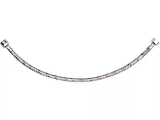 Flexibilis bekötőcső 1/2 col x 1/2 col (belső-külső) 50 cm-es, rozsdamentes acél, hideg és meleg vízhez készült, Országos Higiéniai Intézet tanúsította.