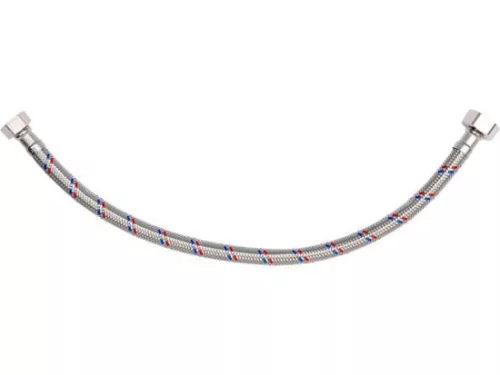 Flexibilis bekötőcső 1/2 col x 3/8 col (belső-belső) 40 cm-es, rozsdamentes acél, hideg és meleg vízhez készült, Országos Higiéniai Intézet tanúsította.