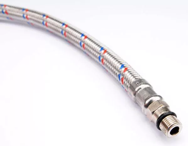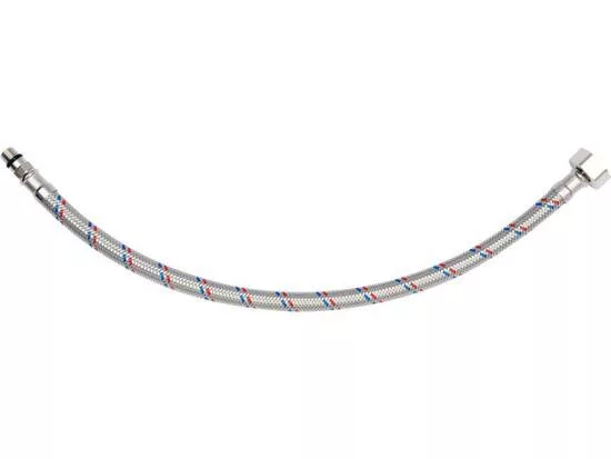 Flexibilis bekötőcső 1/2 col x M 10 (belső-külső) 40 cm-es, rozsdamentes acél, hideg és meleg vízhez készült, Országos Higiéniai Intézet tanúsította.