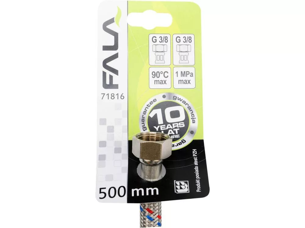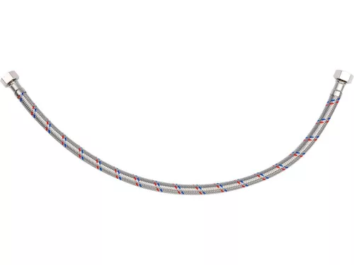 Flexibilis bekötőcső 3/8 col x 3/8 col (belső-belső) 50 cm-es, rozsdamentes acél, hideg és meleg vízhez készült, Országos Higiéniai Intézet tanúsította.