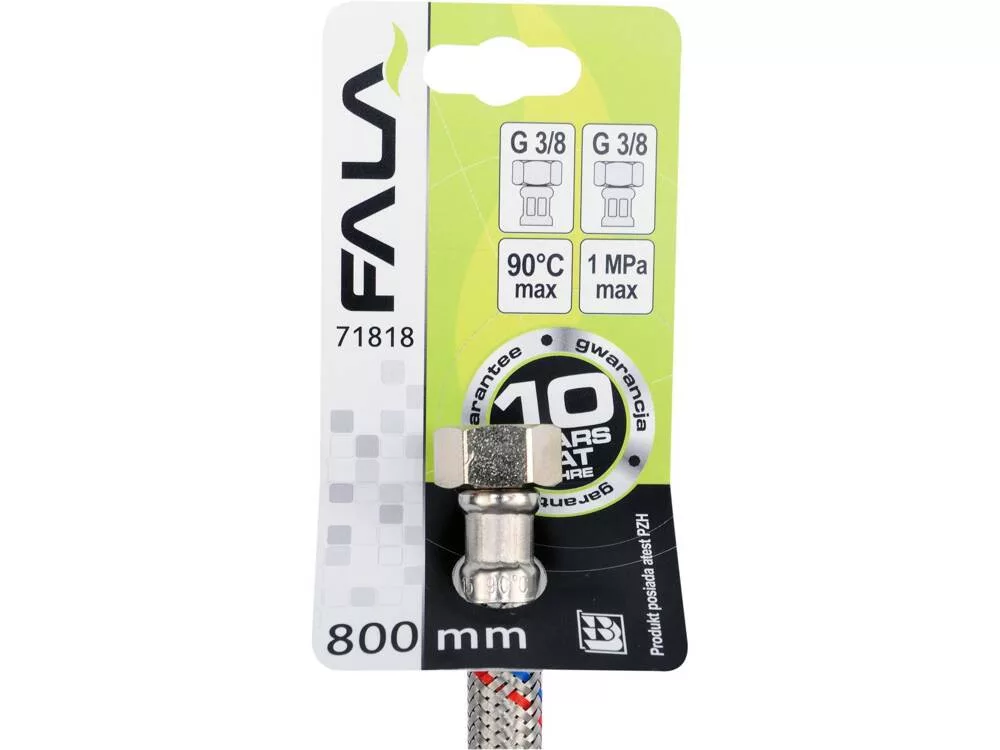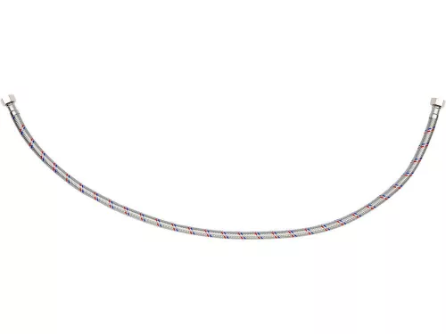 Flexibilis bekötőcső 3/8 col x 3/8 col (belső-belső) 80 cm-es, rozsdamentes acél, hideg és meleg vízhez készült, Országos Higiéniai Intézet tanúsította.