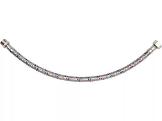 Flexibilis bekötőcső 3/8 col x 3/8 col (belső-külső) 40 cm-es, rozsdamentes acél, hideg és meleg vízhez készült, Országos Higiéniai Intézet tanúsította.