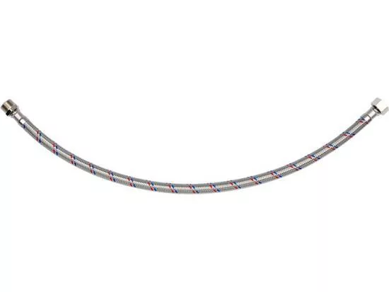 Flexibilis bekötőcső 3/8 col x 3/8 col (belső-külső) 50 cm-es, rozsdamentes acél, hideg és meleg vízhez készült, Országos Higiéniai Intézet tanúsította.