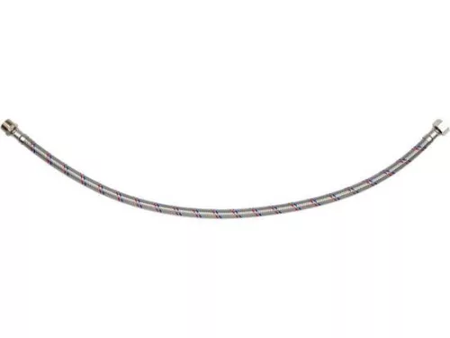 Flexibilis bekötőcső 3/8 col x 3/8 col (belső-külső) 60 cm-es, rozsdamentes acél, hideg és meleg vízhez készült, Országos Higiéniai Intézet tanúsította.