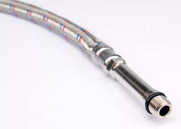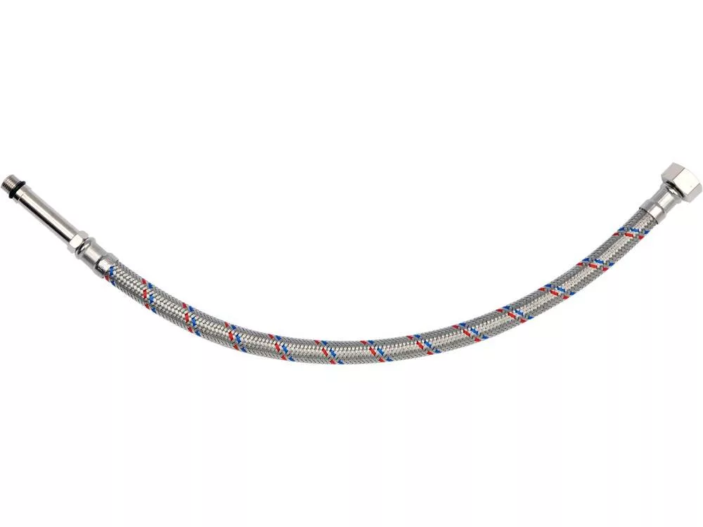 Flexibilis bekötőcső 3/8 col x M 10 (belső-külső) 40 cm-es, rozsdamentes acél, hideg és meleg vízhez készült, Országos Higiéniai Intézet tanúsította.