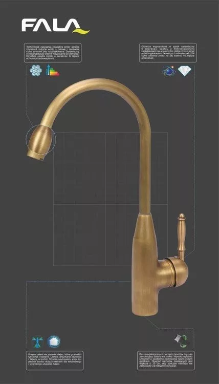 A Fala Retro Bronze 1 mosogató csaptelep a retro stílust a modern technológiával ötvözi.