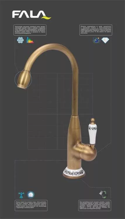 A Fala Retro Bronze 2 mosogató csaptelep a retro stílust a modern technológiával.