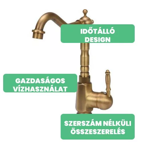 Mosogató csaptelep, retro stílust, modern technológiával, CORUNDox kerámia betéttel.