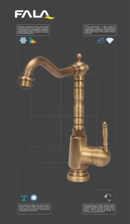 A Fala Retro Bronze 3 mosogató csaptelep ötvözi a retro stílust a modern technológiával.