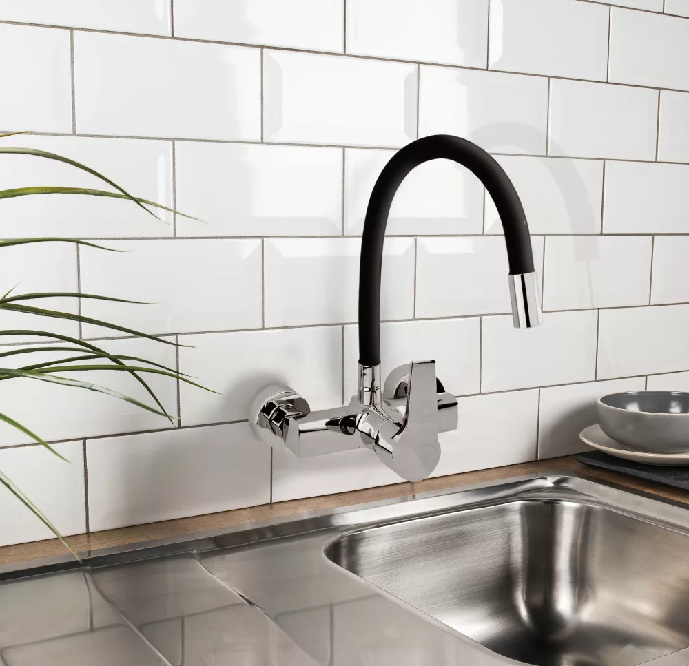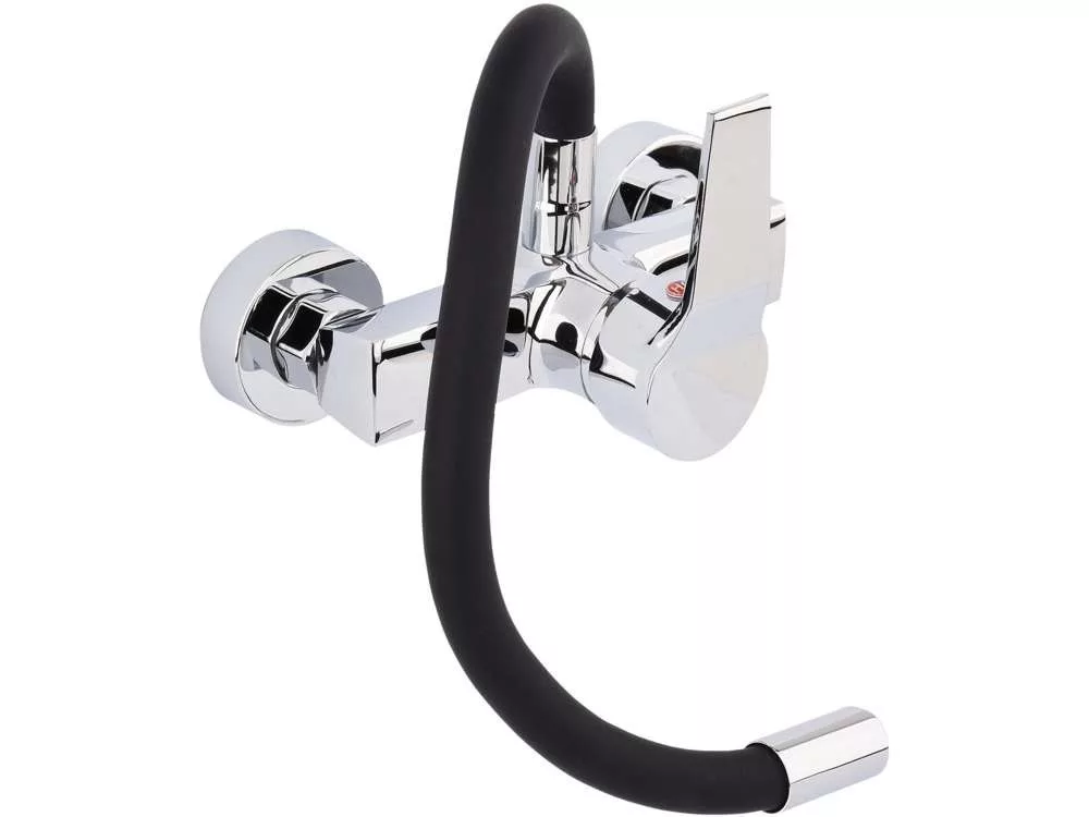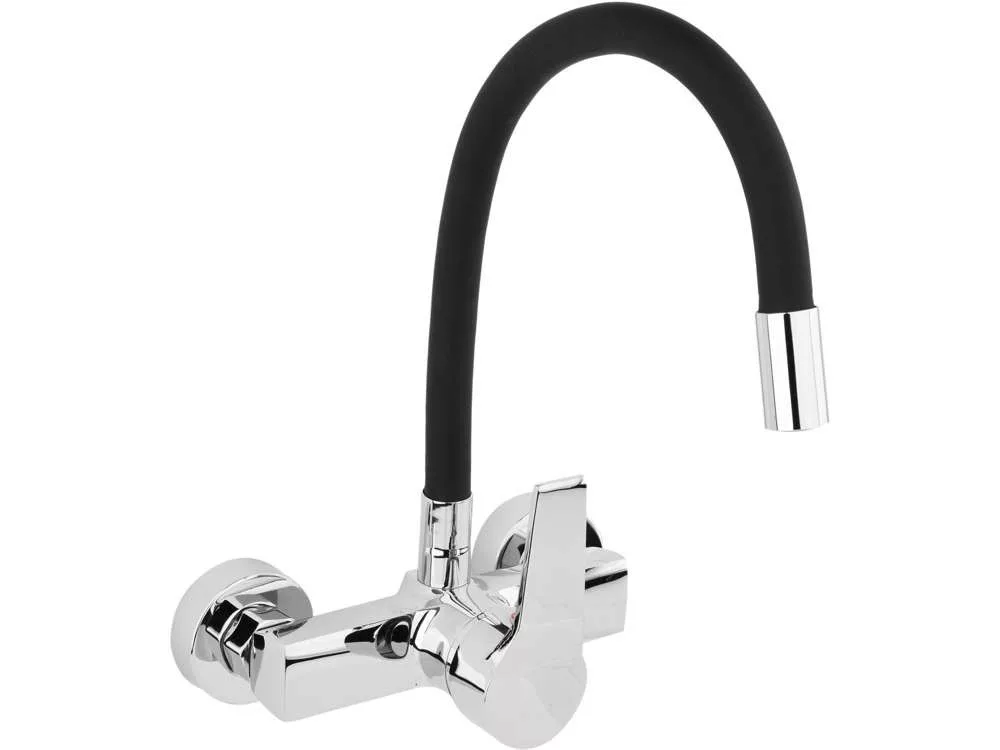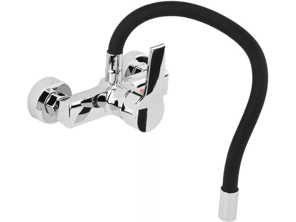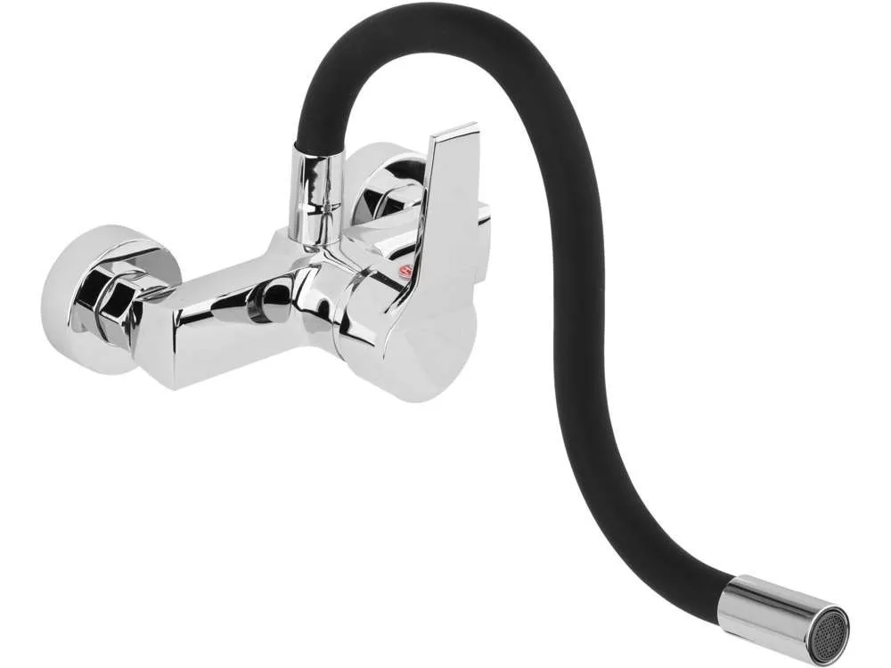 Fala mosogató csaptelep fekete flexibilis csővel - falra szerelhető