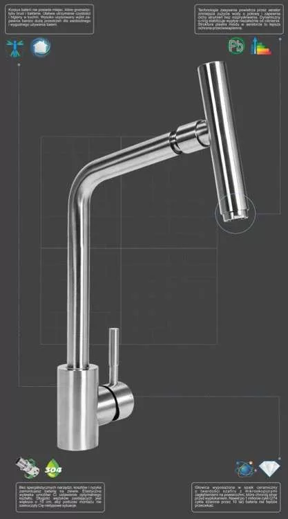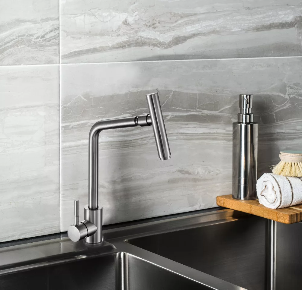 Mosogató csaptelep inox Steely, rozsdamentes acélból, 360˚-ban forgatható.
