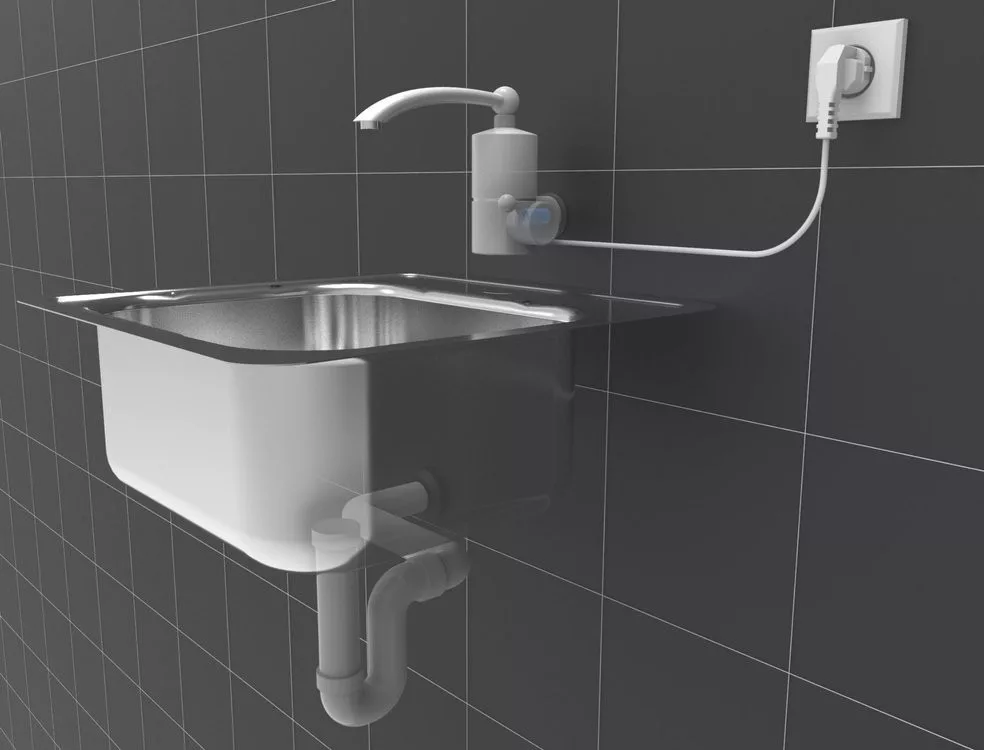 Vízmelegítő mosogatócsaptelep átfolyós fali, alkalmas vízmelegítésre bonyolult vízvezeték és fűtési rendszerek nélkül is.