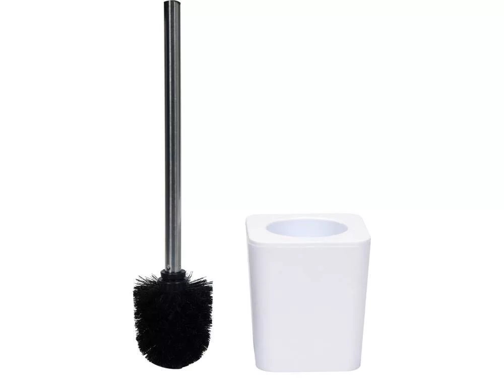WC kefe és tartó, modern forma, műanyagból, fehér színű.