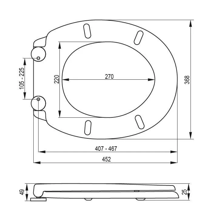 WC ülőke D-alakú, formatervezett, modern megjelenésű, tartós zsanérokkal.