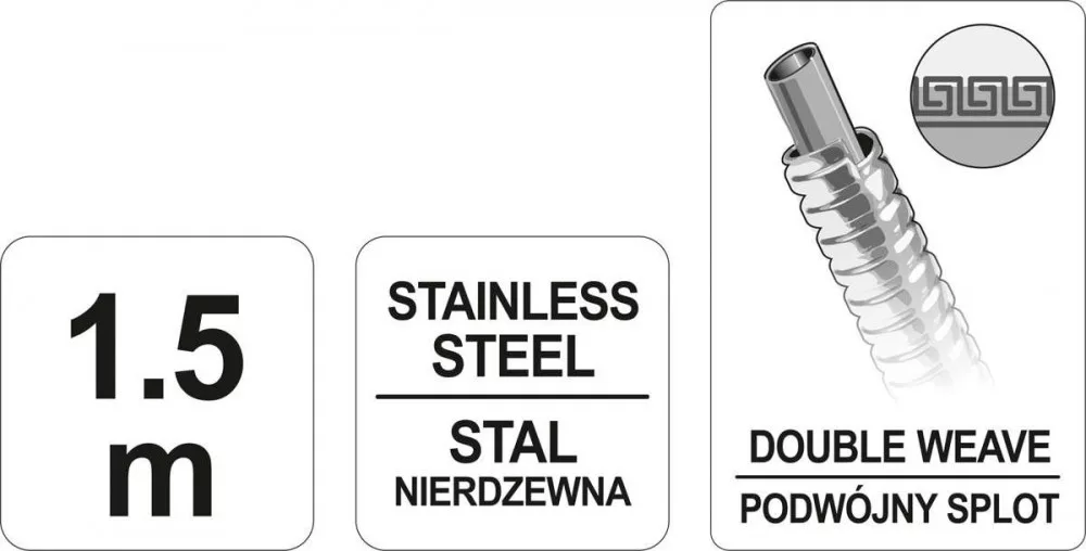 Zuhanycső erősített 1,5 m-es, rozsdamentes acélból.