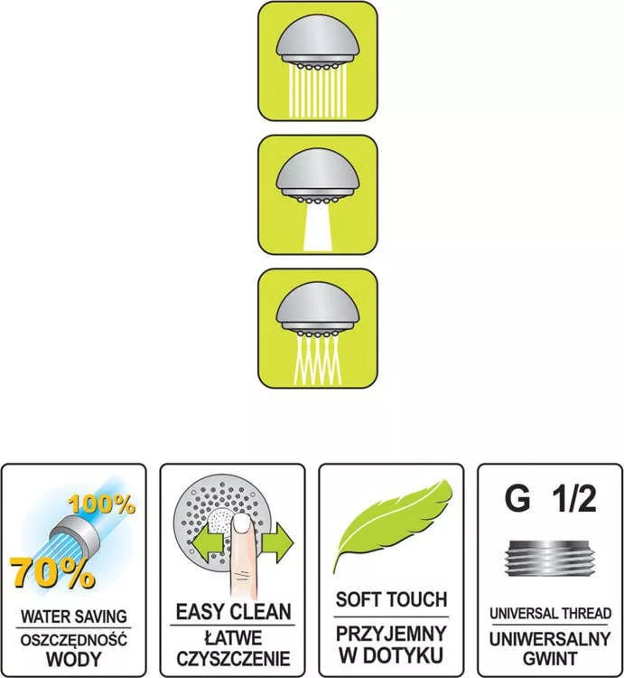 Bármilyen hagyományos zuhanycsőhöz illeszkedik.