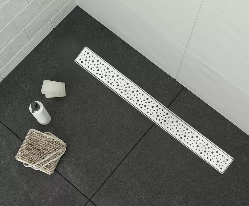 A Fala lineáris lefolyó nagyszerű ötlet a fürdőszobai tér elegáns és praktikus elrendezéséhez.