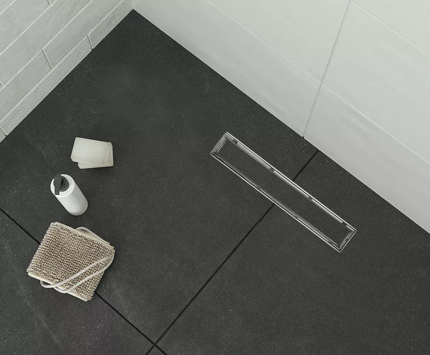A Fala lineáris lefolyó nagyszerű ötlet a fürdőszobai tér elegáns és praktikus elrendezéséhez.