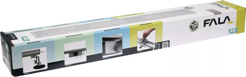 Fala Zuhanylefolyó 900 mm-es, AISI 304 rozsdamentes acélból, amely ellenáll a korróziónak, a tisztítószereknek és a mechanikai sérüléseknek.
