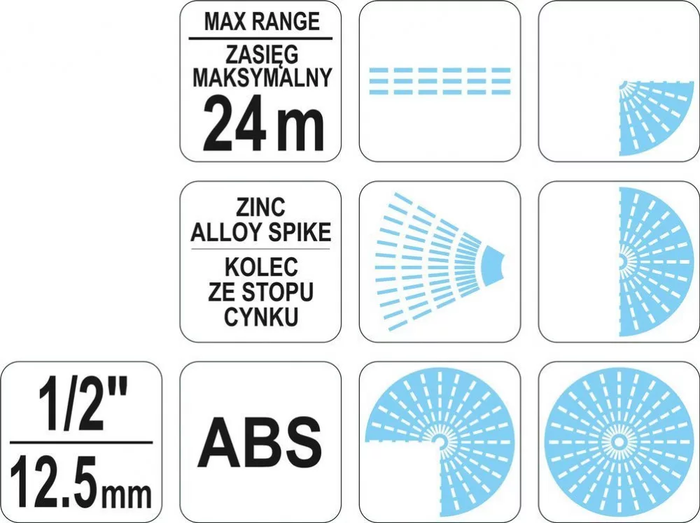 Impulzus locsoló fém leszúróval 6 funkciós, ABS műanyagból, gyorscsatlakozóval.