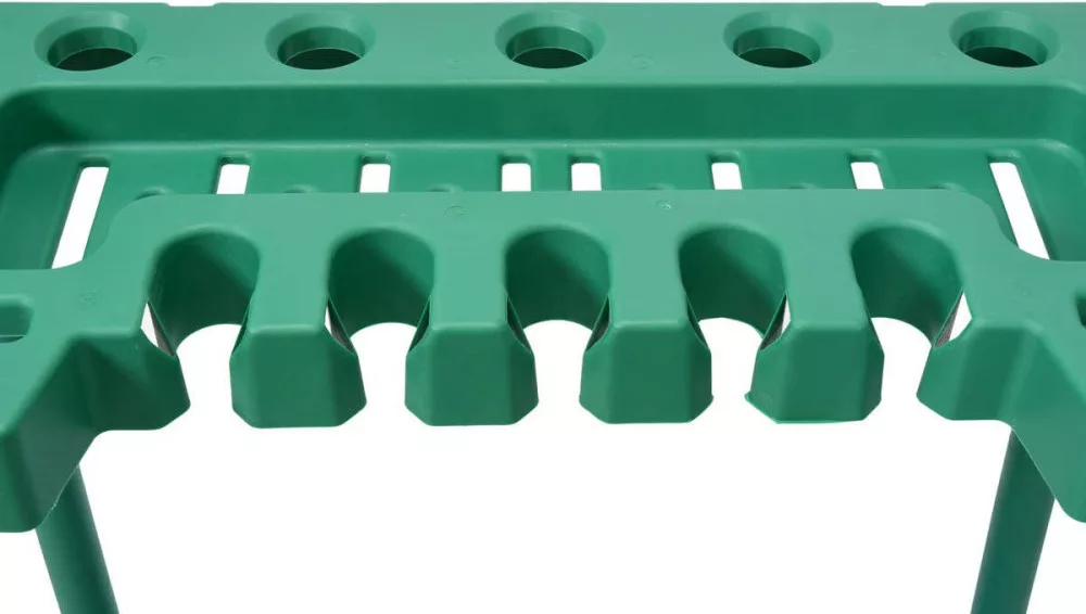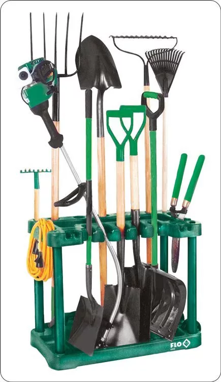 Praktikus megoldás hosszú kerti szerszámok, például kapák, lapátok, villák, valamint kisebb kéziszerszámok vagy hosszabbítók tárolására.