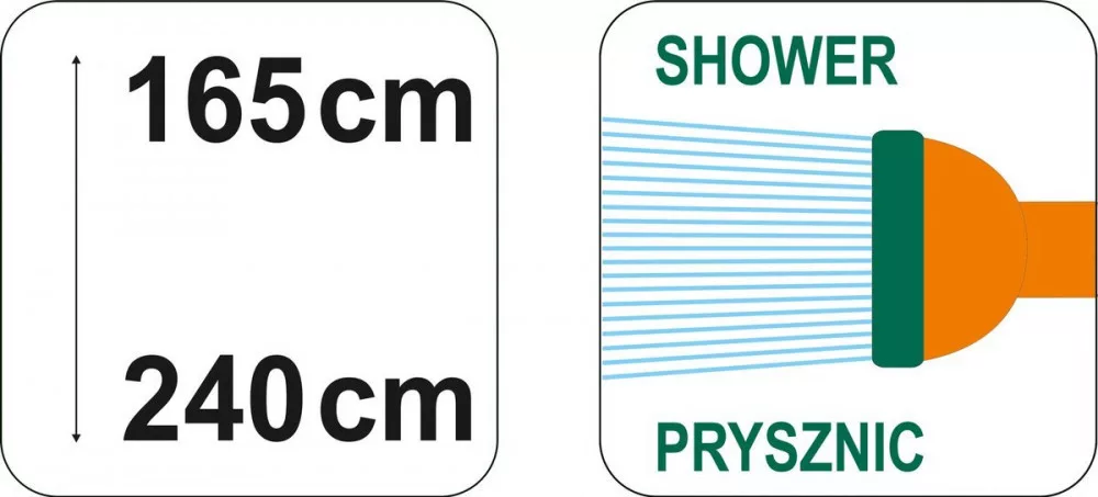 A könnyen felszerelhető és egyszerűen használható FLO kerti zuhany magassága 1,65 és 2,40 m között állítható.