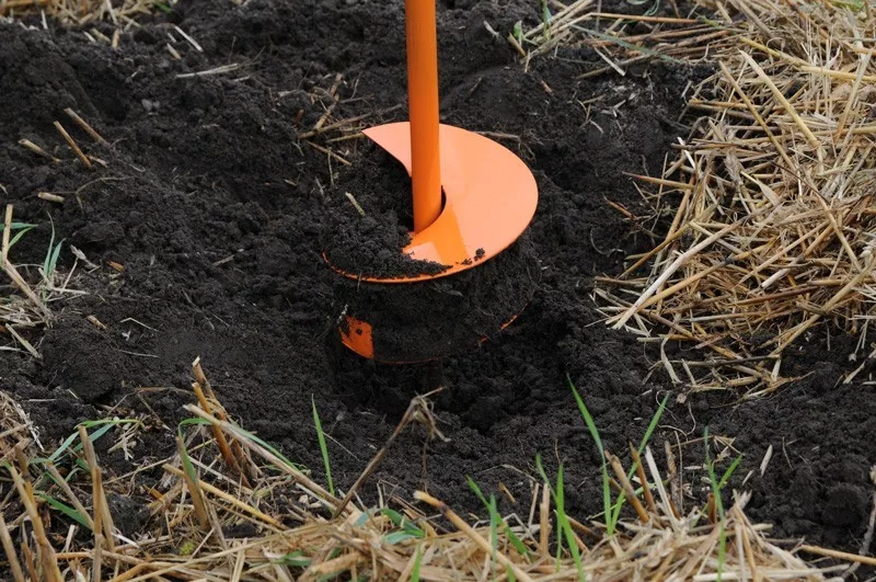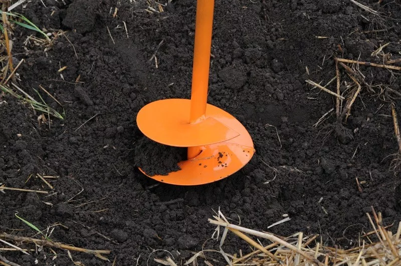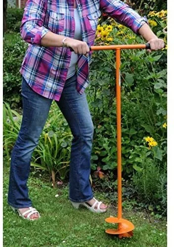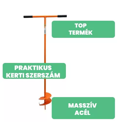 Kézi talajfúró, kiváló minőségű acélból, kényelmes fogantyúval.