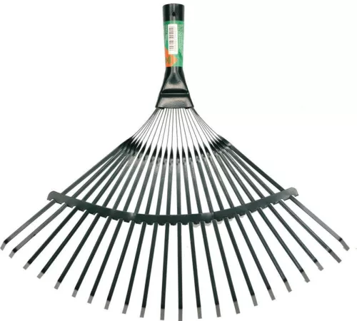 Könnyű kerti gereblye rugalmas fémlemez csíkokból.
