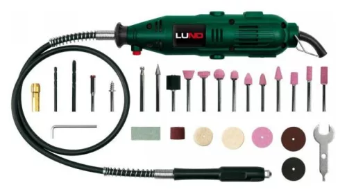 A LUND többfunkciós szerszámkészlet, lehetővé teszi többek között: fúrást, köszörülést, polírozást, marást, gravírozást.