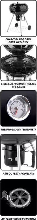 Faszenes grillsütő 57 cm-es, porszórt bevonattal, kültéri használatra tervezett.