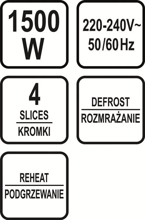 Kenyérpirító, 4 szeletes - 1500W teljesítményű, ellenőrző lámpával.