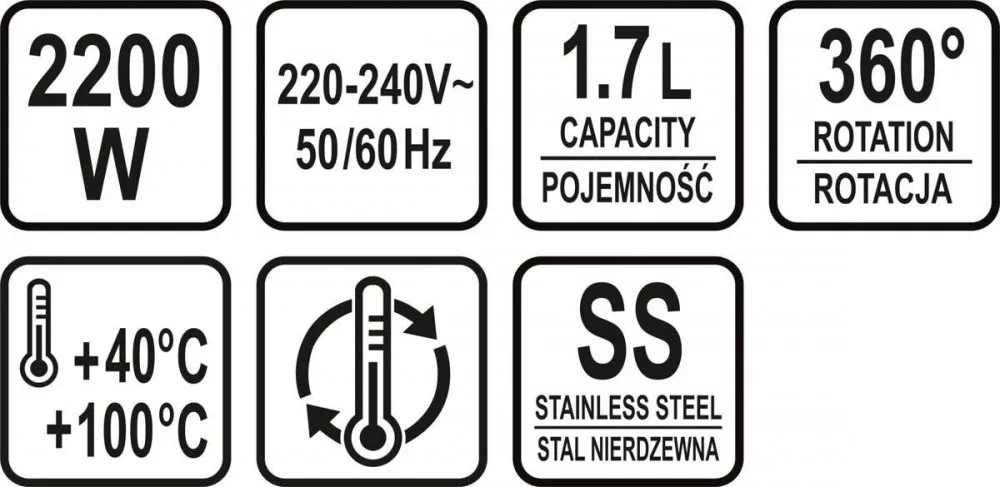 A 40-100 (10 fokonkénti) hőmérséklet-szabályozás lehetővé teszi többek között a tea vagy kávé típusának megfelelő hőmérséklet kiválasztását.