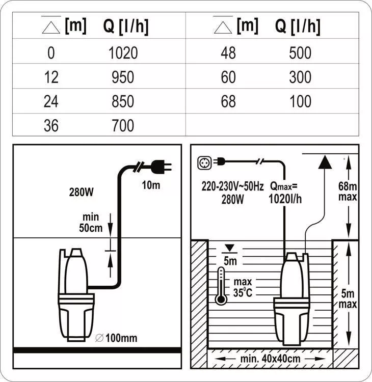 A szivattyút tiszta víz szivattyúzására tervezték háztartási és kerti alkalmazásokban. A szivattyút ajánlott szakaszos üzemmódban működtetni.