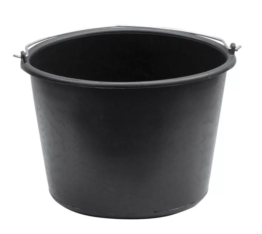 12 literes műanyag vödör. Széles körben használják felújítási és építkezési munkálatoknál, valamint a háztartásban. A tömör fogantyú acélhuzalból készült.
