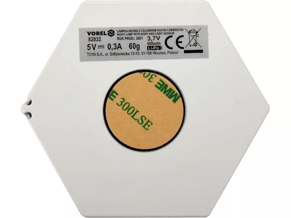 A mozgás- és szürkületérzékelővel ellátott vezeték nélküli éjszakai lámpa kiválóan alkalmas kiegészítő fényforrásként szobákban, szekrényekben vagy tárolóhelyiségekben. Három AAA elemmel működik.
