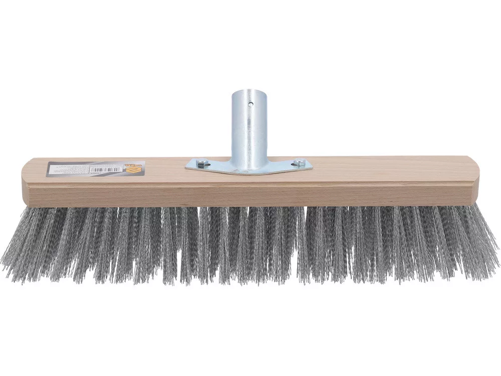 Speciális 30 cm széles drótseprű burkolat tisztítására. Robusztus fémnyéllel szerelve a nyél rögzítéséhez.