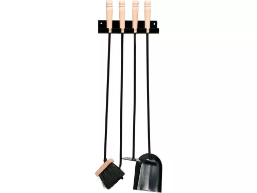 Funkcionális kiegészítők a kandallók, tűzhelyek és környezetük tisztán tartásához.4 részes: szemétlapát, piszkavas, kaparó és söprű.