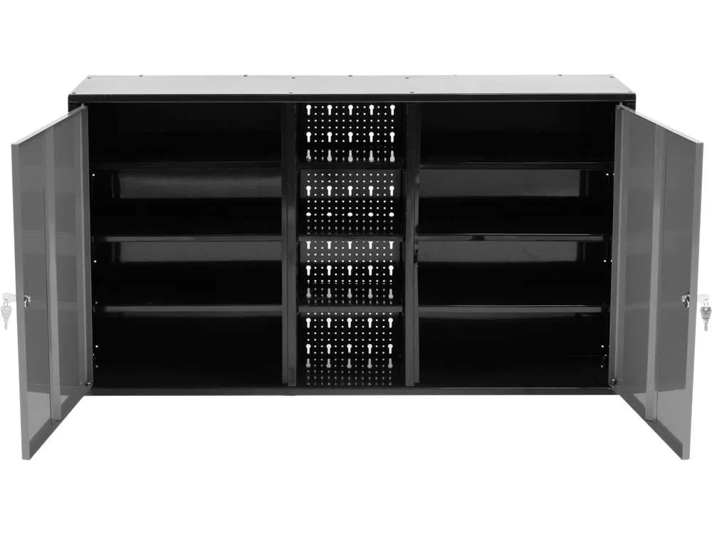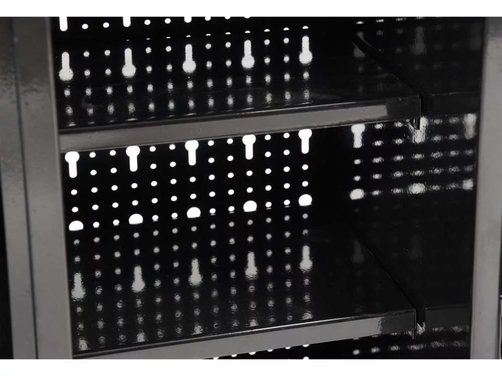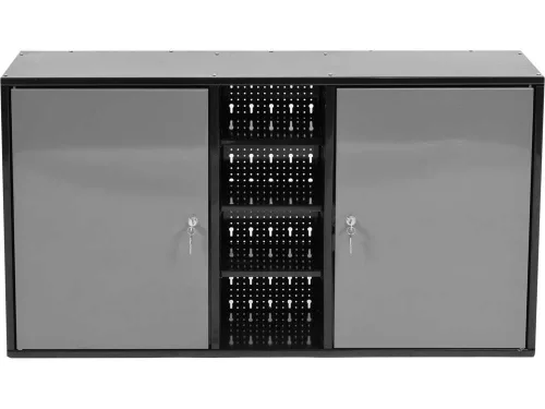 Lehetővé teszi a kényelmes munkaterület kialakítását és a szerszámok biztonságos tárolását. 0,8-1 mm vastagságú, porszórtan bevont fémlemezből készült.