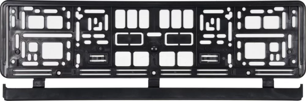 A rendszámtábla alá történő felszerelésre tervezett keret. Nincs szükség fúrásra.