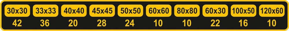 Az ékek és kapcsok száma 1 m2 -enként a csempe méretétől függően: