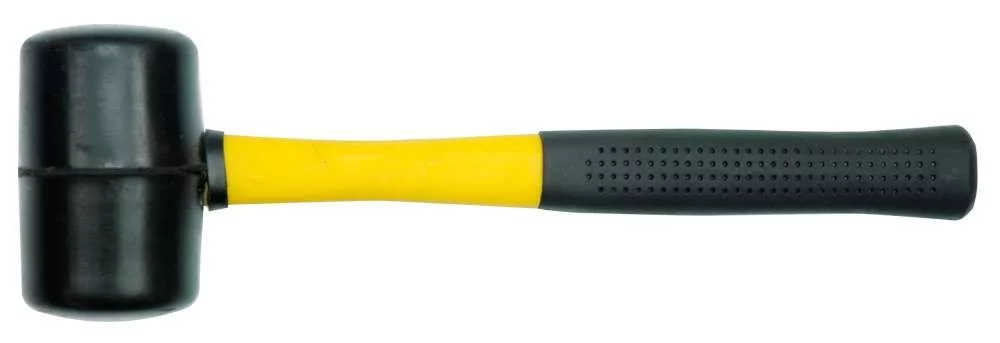 Kemény fekete gumiból készült kalapács üvegszálas műanyag nyélre szerelve - sérülésálló. Csúszásmentes bevonattal ellátott nyél