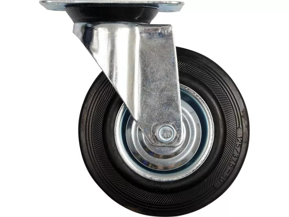 Önbeálló rögzítéssel, csapágyazva, fekete gumiabroncs, teljes magasság 195 mm. 160 mm átmérőjű kerék önbeálló szerelvénnyel, csapágyazással, fekete gumiabronccsal